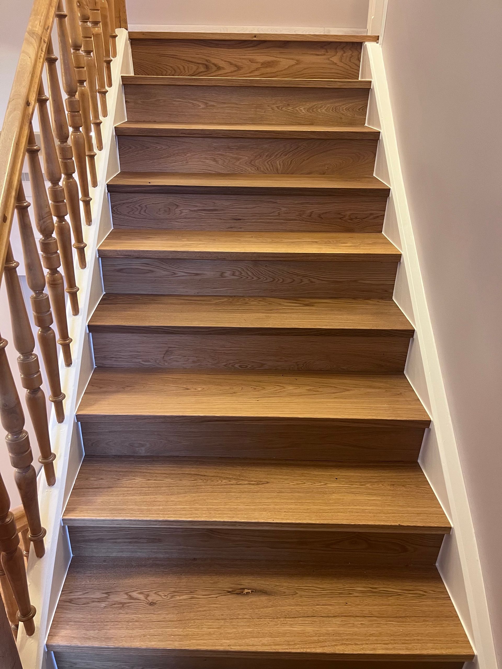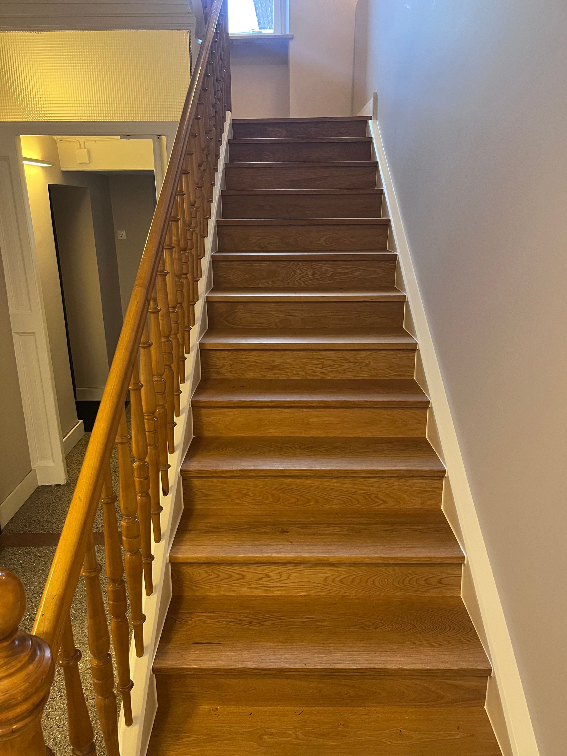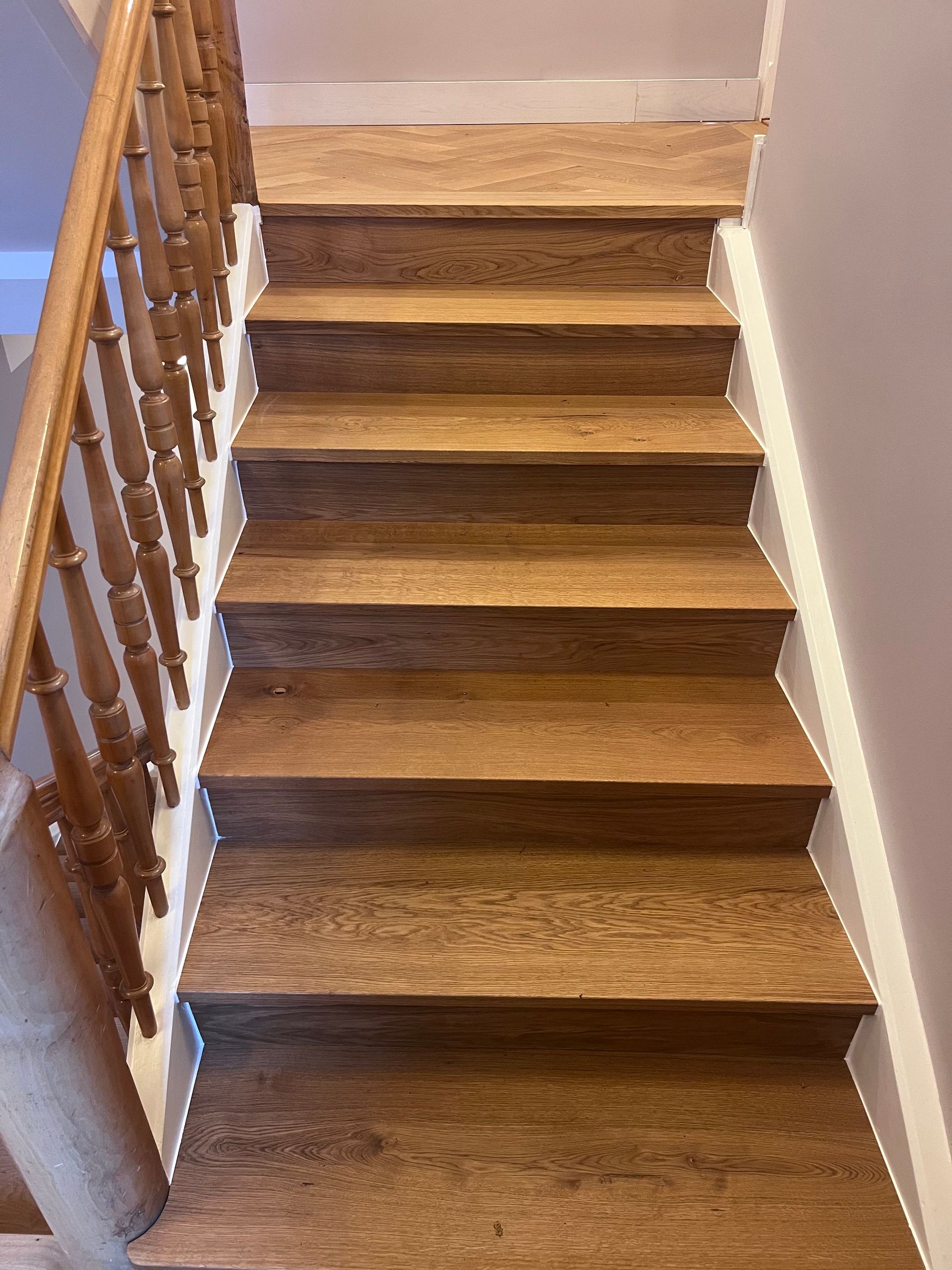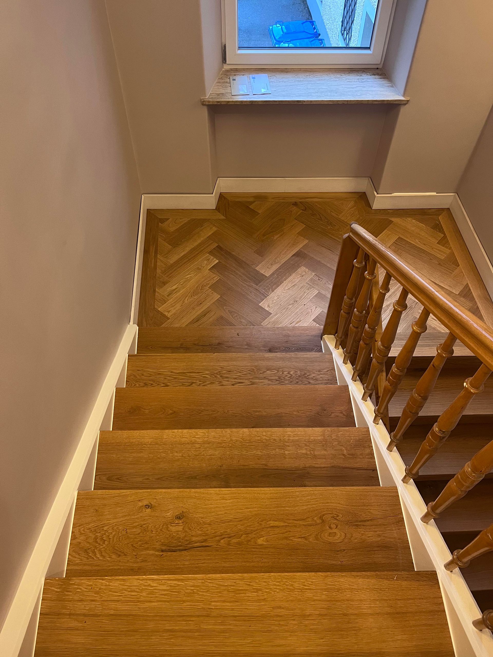 Mit der Sanierung dieses Treppenhauses wurde nicht nur die Funktionalität wiederhergestellt, sondern auch ein echtes Schmuckstück im Inneren des Hauses geschaffen. Die Kombination aus Fischgrät-Podesten, massiven Eichenstufen und geölter Oberfläche verleiht dem Gebäude einen einzigartigen Charakter – warm, einladend und wertbeständig. So wird jeder Schritt durch das Treppenhaus zu einem kleinen Erlebnis – und das für viele Jahre.